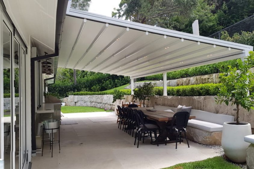 Với các không gian như ban công, sân trước, sân thượng hay mặt tiền quán ăn, quán cà phê, mái hiên di động tạo thêm khu vực sử dụng ngoài trời mà vẫn bảo đảm thoải mái, không bị ảnh hưởng bởi thời tiết.